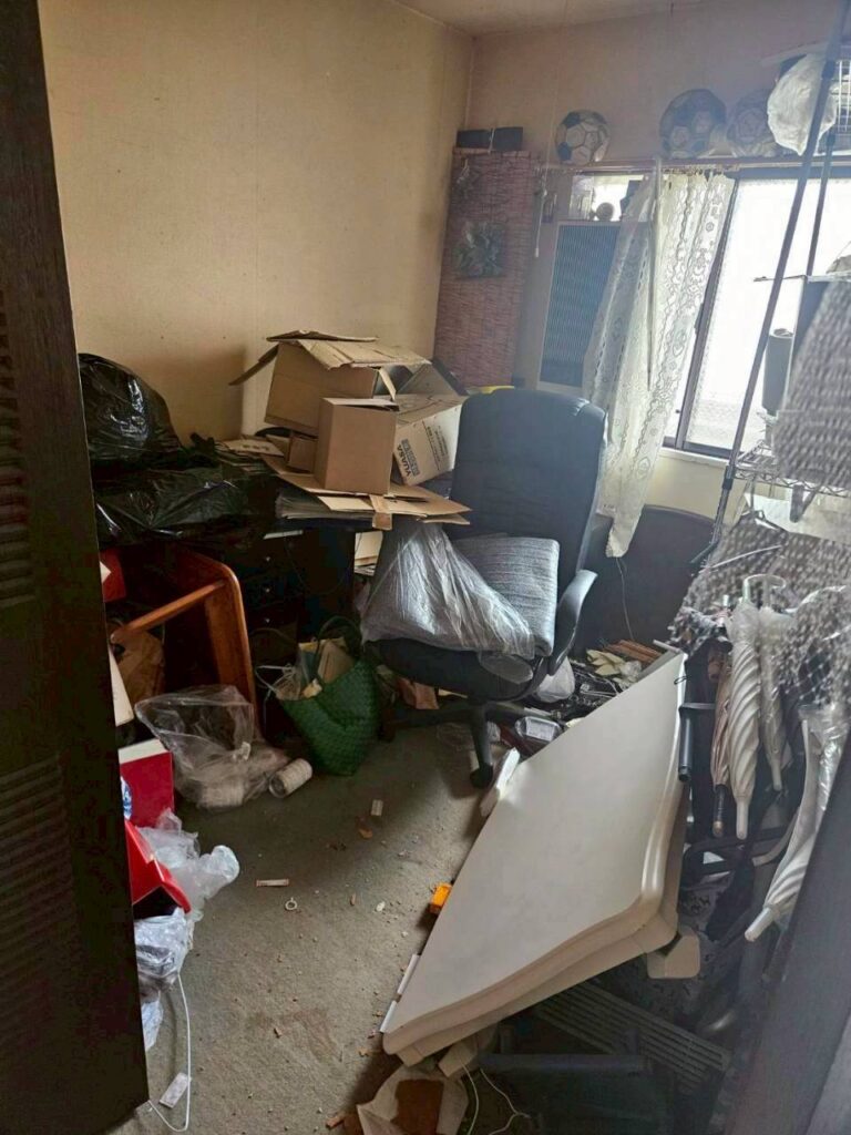室内外すべての残置物を対象に、仕分けから搬出まで一括対応しました。